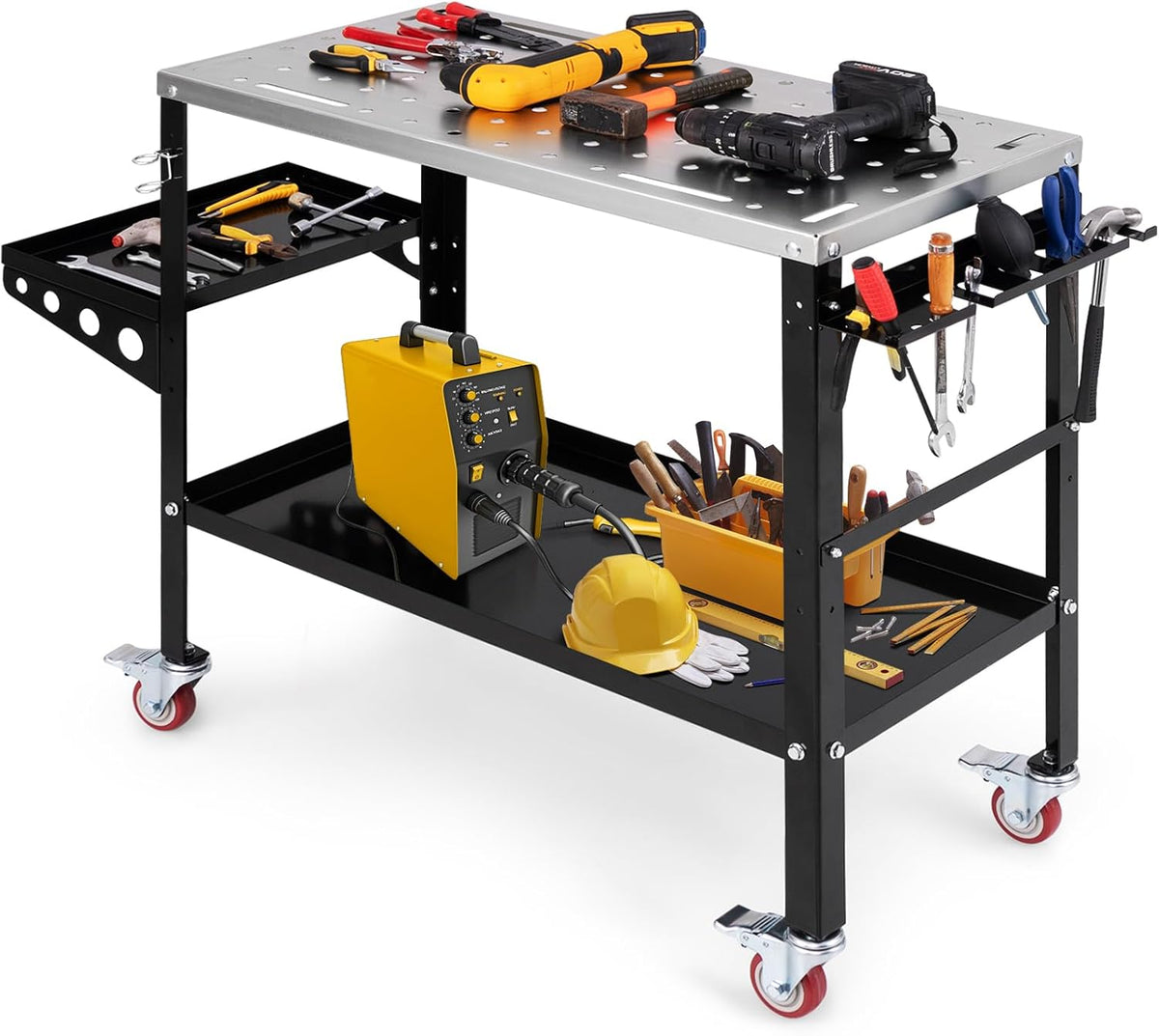 Piattaforma da Lavoro Multifunzione 2-in-1 | Trabattello Portatile Tavolo per Saldatura con Ruote | Lavoro Zincata 36x140 cm | Portata 500 KG